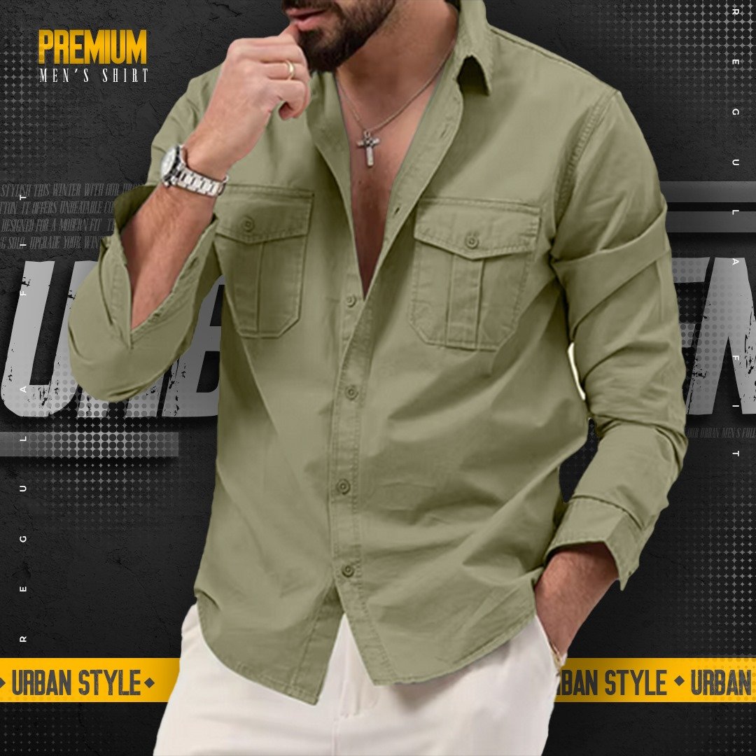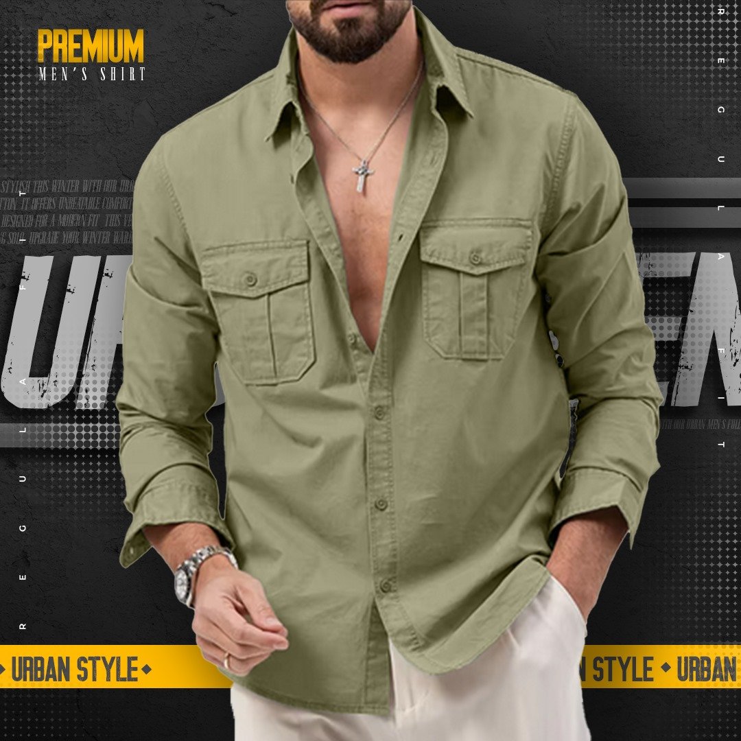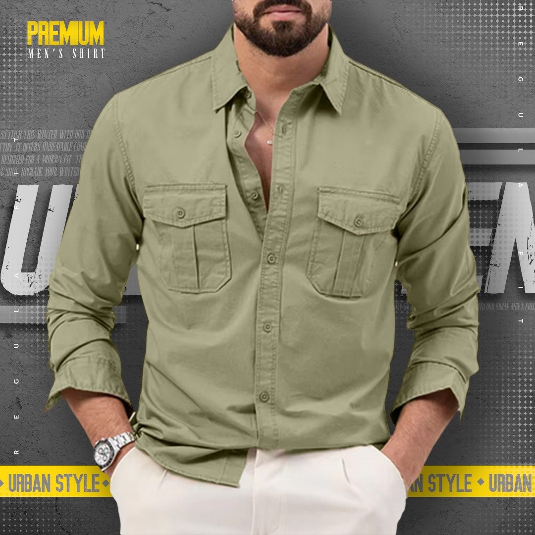 1 peace double pocket mens cotton shirt(lemon green)