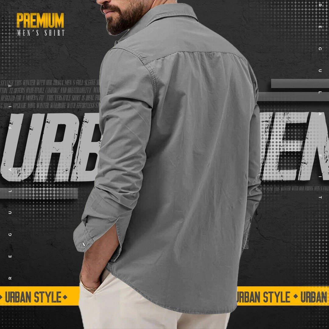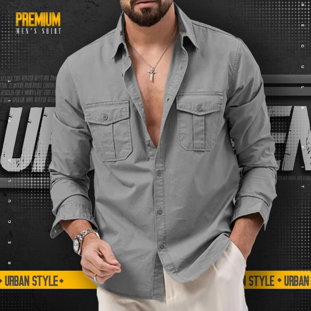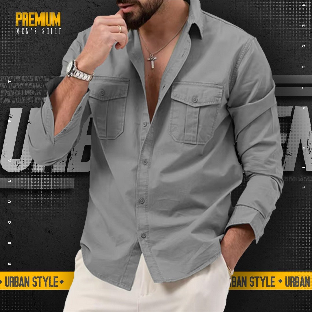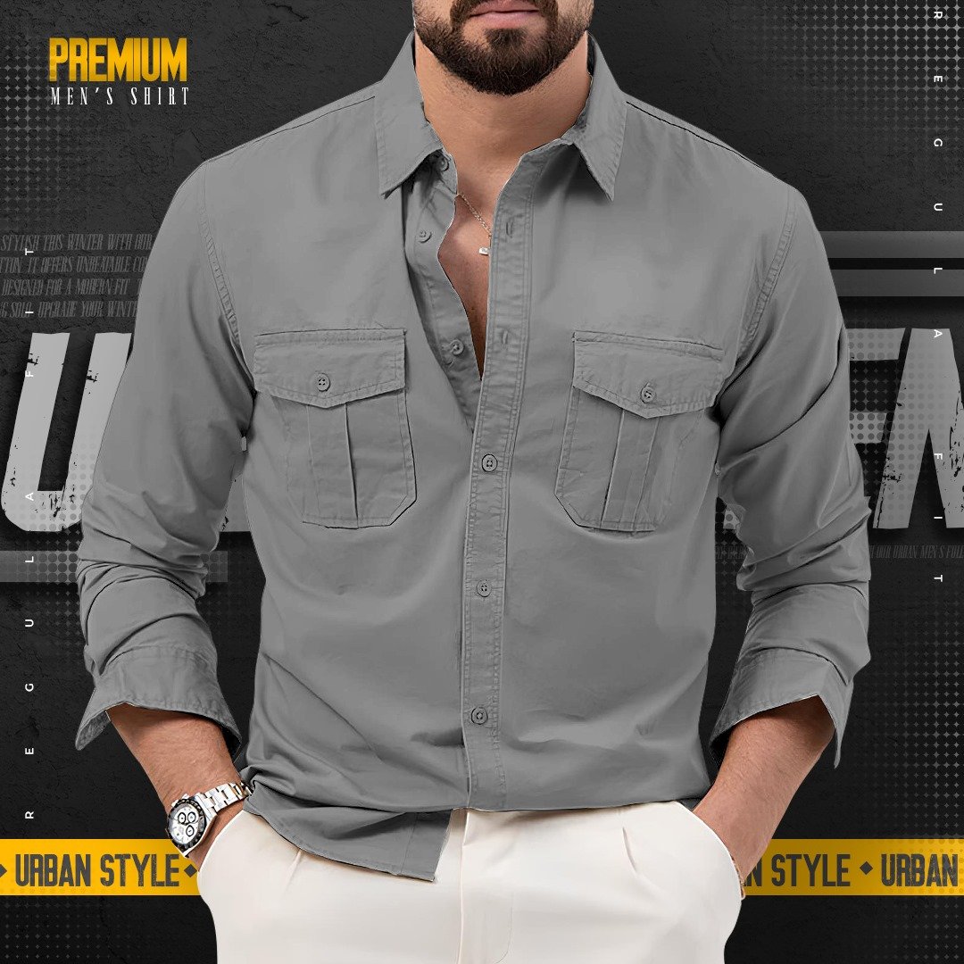 1 peace double pocket mens cotton shirt(Ash/grey)