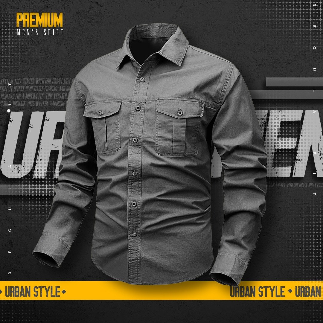 1 piece double pocket mens cotton shirt(Ash/grey)