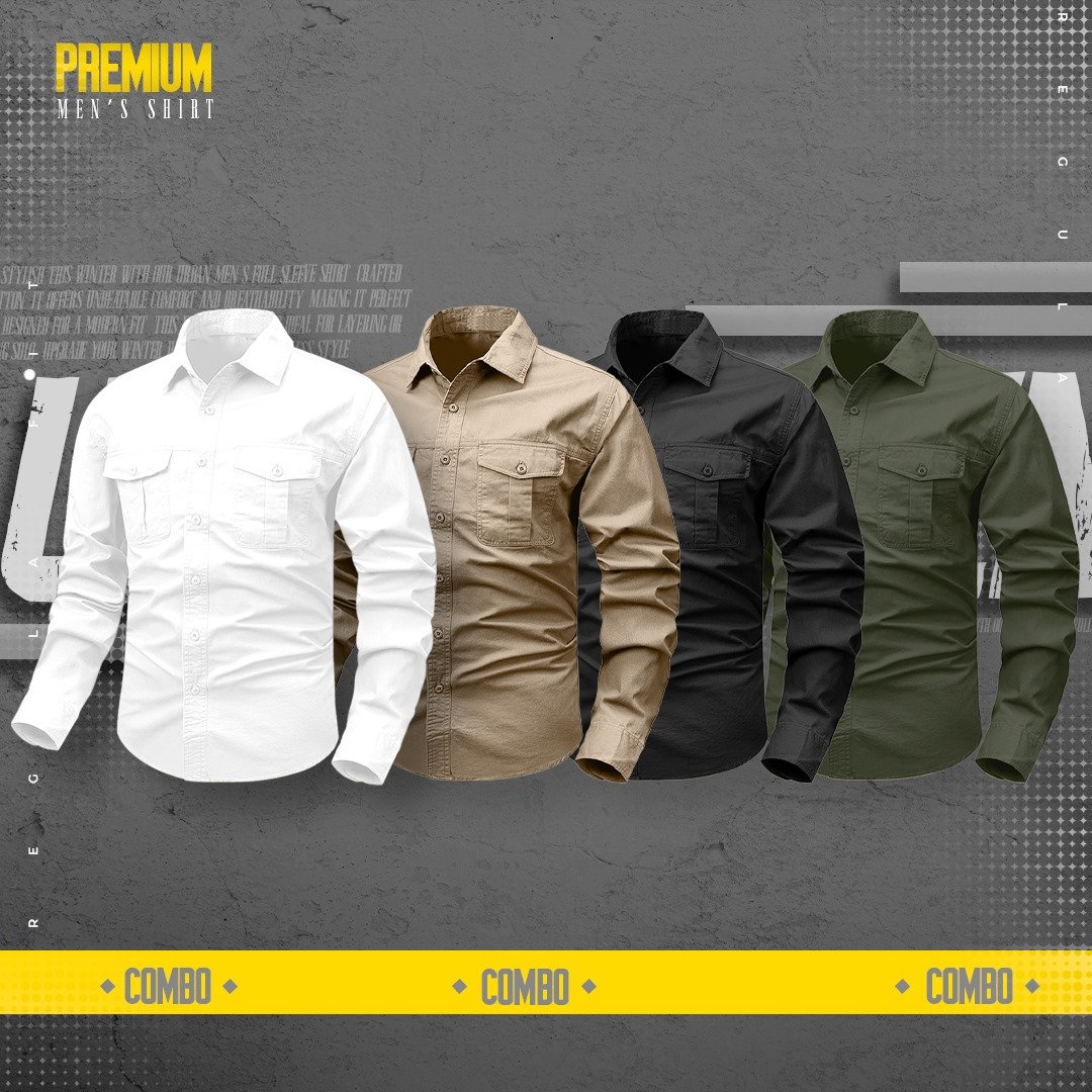 4piece double pocket mens cotton shirt(white,Black,Khaki,Olive)